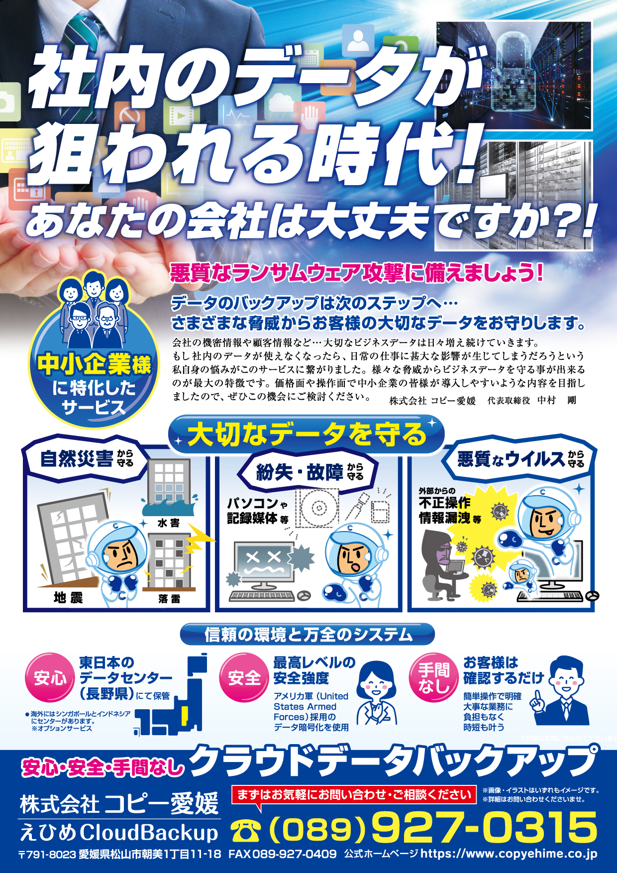 安心して事業活動を行うためにも、データのバックアップについて一度見直す機会にされませんか?